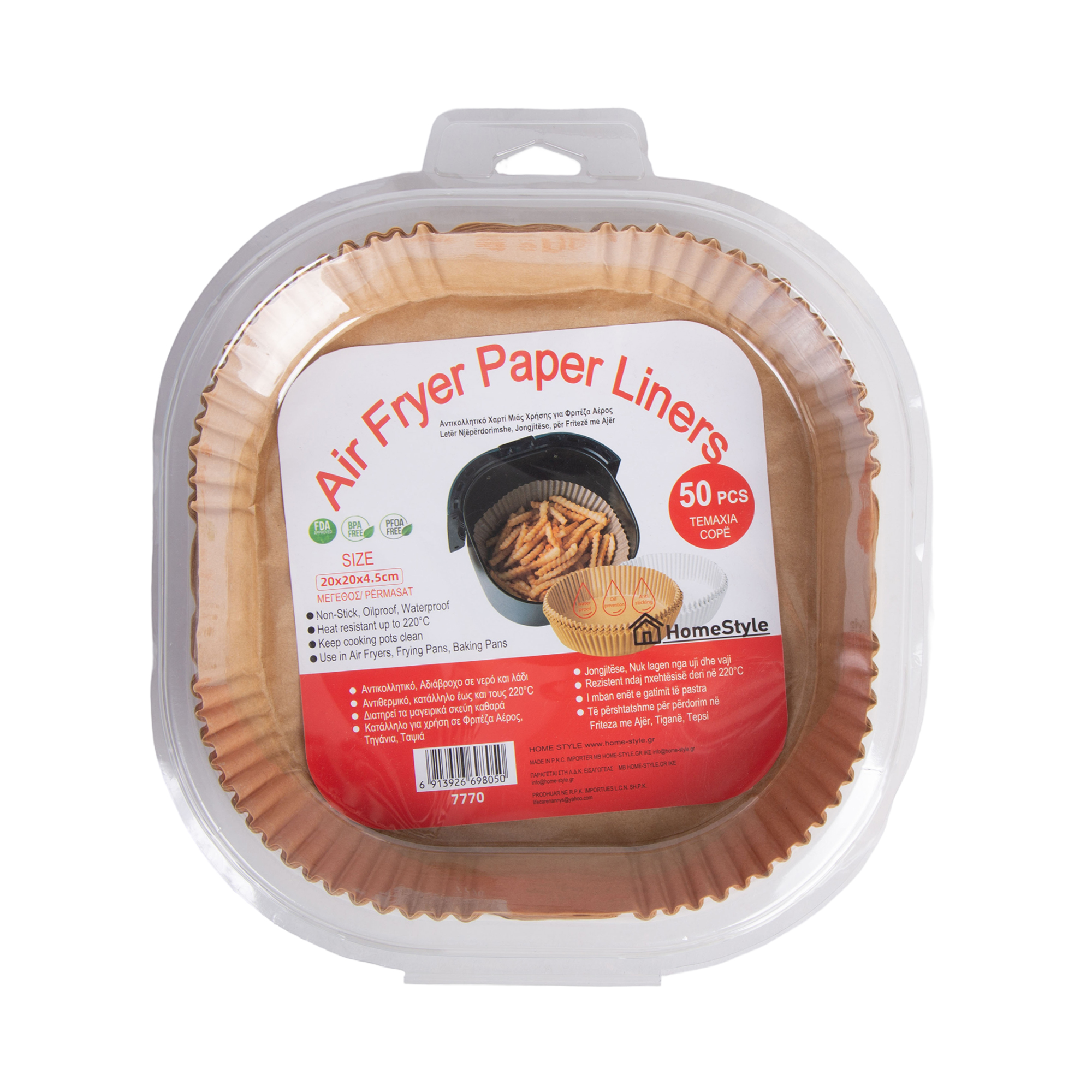 Αντικολλητικές φόρμες για φριτέζα αέρος (air fryer pad paper) τετράγωνες από λαδόχαρτο Homestyle 20x20x4,5 εκ. 50 τεμ. (7770)